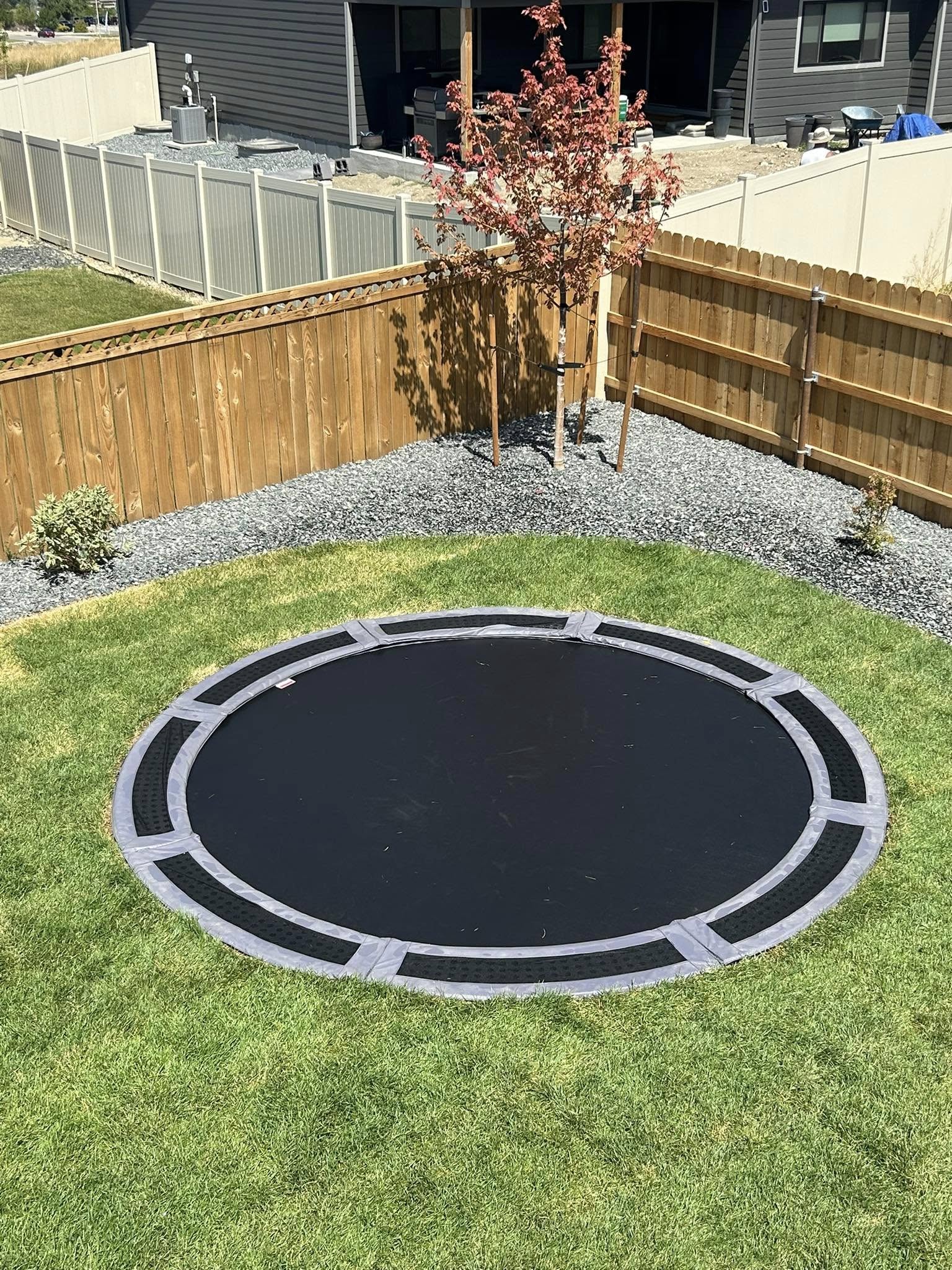 Enhance your outdoor space with our In Ground Trampolines, seamlessly integrated into your landscape design & construction for a safe, stylish blend of recreation and aesthetic appeal in your backyard.